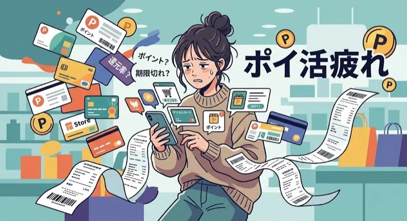 休日の夕方、重たいエコバッグを両手に提げて帰り道を歩きながら、さっき見た特売のポップを思い出して激しい後悔に襲われる。 家に帰れば、ポイントサイトのルーティン巡回が待っているし、クレカのキャンペーンエントリーも忘れてはいけない。複数のアプリを管理すること自体が、もはや無給の仕事のようだ。